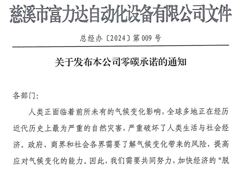 關(guān)于發(fā)布本公司零碳承諾的通知